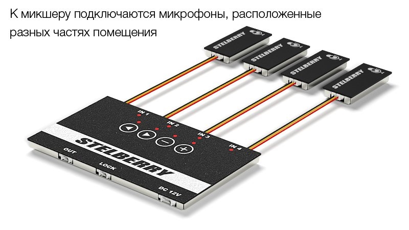 Stelberry MX-310. Подключение активных микрофонов к аудиомикшеру